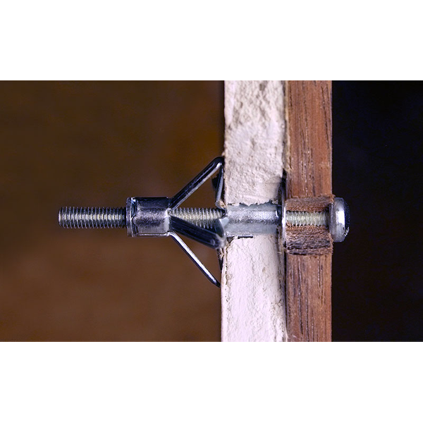 - Fixation métallique zinguee à filet métrique pour corps creux, disponible avec différentes vis.