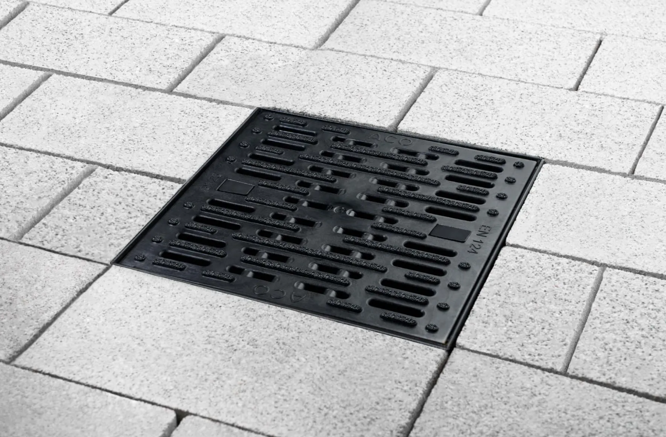 Cette grille passerelle microgrip synthétique est compatible avec les caniveaux ACO de type Europoint (Corps d'avaloir HAUT et BAS)
